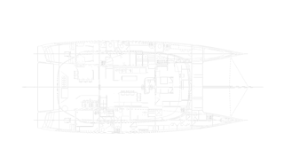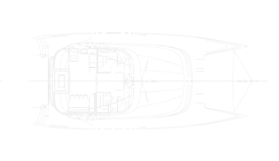 If you have sailed the HH 66 or been aboard an HH 55 you will recognize the design cues. They include a large bridge deck cabin with appropriate overhangs and shadow lines. The bright cabins are maintained with long windows on the hulls. This is a daggerboard boat of course. That means upwind performance because you know the typical wind direction is coming from where you want to go.