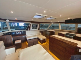 The single helm buys you a lounge area on the port side. Theres a choice of materials for the cockpit and transom steps. Notice the boom. You won’t need a step ladder to access it. Like the HH line, all OC 50’s have a boom located within reach. Loading up with the custom solar panels? They’re the walk-on variety. All 1.5 kw of them.