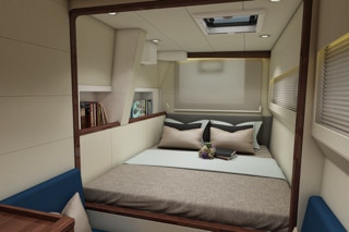 Claustrophobic? Not in these aft cabins. Perhaps not even in the forward cabin. You’ll need to see it for yourself. I mention this as the affliction is confided to me more often than not. The HH Series has a solution for that. It comes in the form of light, space, and access. The whole boat is that way. If this is you, you’re not limited. It is your boat as much as it is for your mate that could sleep under a couch if they were so inclined.