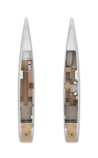 Four cabins or three cabins. There’s also an ability to park someone (or even two) up in the salon for passages. The berths are easy to access. Storage is designed for extended voyaging.